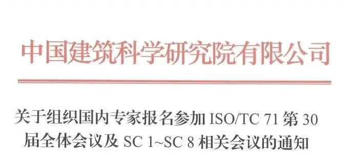 國內(nèi)專家參加ISO/TC 71第30屆全體會(huì)議及SC 1~SC 8相關(guān)會(huì)議,需向中國建研院提出申請并參加由中國建研院統(tǒng)一組織的中國代表團(tuán),不得自行與ISO聯(lián)系。