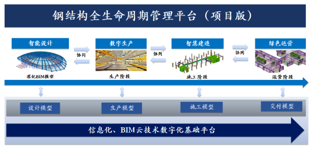 住建部近幾年持續(xù)將“鋼結(jié)構(gòu)裝配式建筑”列入工作重點(diǎn),大力推廣鋼結(jié)構(gòu)建筑,鋼結(jié)構(gòu)項(xiàng)目越來越普遍。但當(dāng)前鋼結(jié)構(gòu)項(xiàng)目管理手段較為原始,產(chǎn)業(yè)化、信息化、智能化程度較低,主要原因在于鋼結(jié)構(gòu)全產(chǎn)業(yè)鏈各環(huán)節(jié)未打通,數(shù)據(jù)不能有效共享和傳遞,缺乏全生命周期的綜合管理。