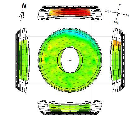 “冰絲帶”的屋頂結構采用單層索網結構形式。為了合理準確地評估如此巨大的單層索網屋蓋在風荷載作用下的性能,以及圓管對幕墻局部的荷載影響,風洞試驗研究設置了兩種工況:一種是幕墻外配有環向管的情況,另一種是拆掉環向管的情況。通過兩種工況的對比試驗,可以清楚地發現,帶環向管時玻璃幕墻表面的風壓分布會比較均勻。結合試驗測試數據進行的風致振動分析,給出了結構工程師最為關心的各個風向下的等效靜力風荷載。