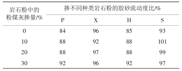 不同巖石粉與粉煤灰復(fù)合對(duì)水泥膠砂流動(dòng)性的影響