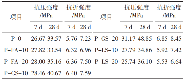 不同礦物摻合料對(duì)片麻巖石粉水泥砂強(qiáng)度的影響
