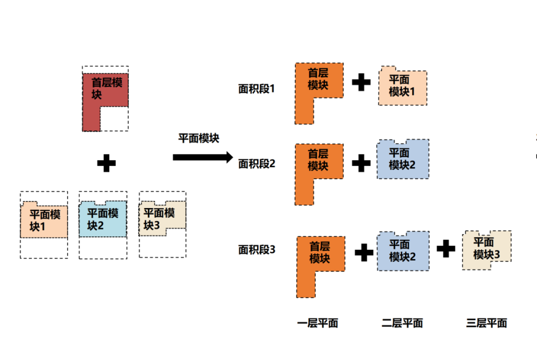 平面布局充分考慮裝配式建筑特點(diǎn),在同一宅基地尺寸框架下,采用首層布局一致,二層、三層功能房間模塊增減的方式,形成不同的空間布局,滿足了不同家庭的多樣化需求,并實(shí)現(xiàn)造價(jià)低,工期短的建造目標(biāo)。