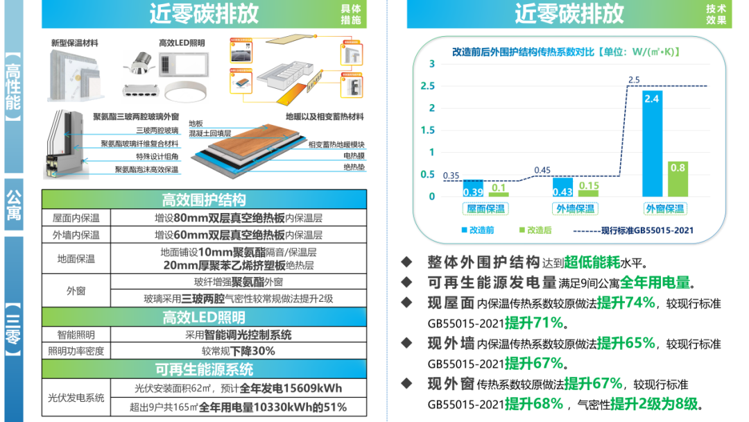 在近零碳排放方面,項(xiàng)目全面提升圍護(hù)結(jié)構(gòu)保溫性能,提高可再生能源發(fā)電效率,結(jié)合能碳雙控系統(tǒng),實(shí)現(xiàn)近零碳空間。