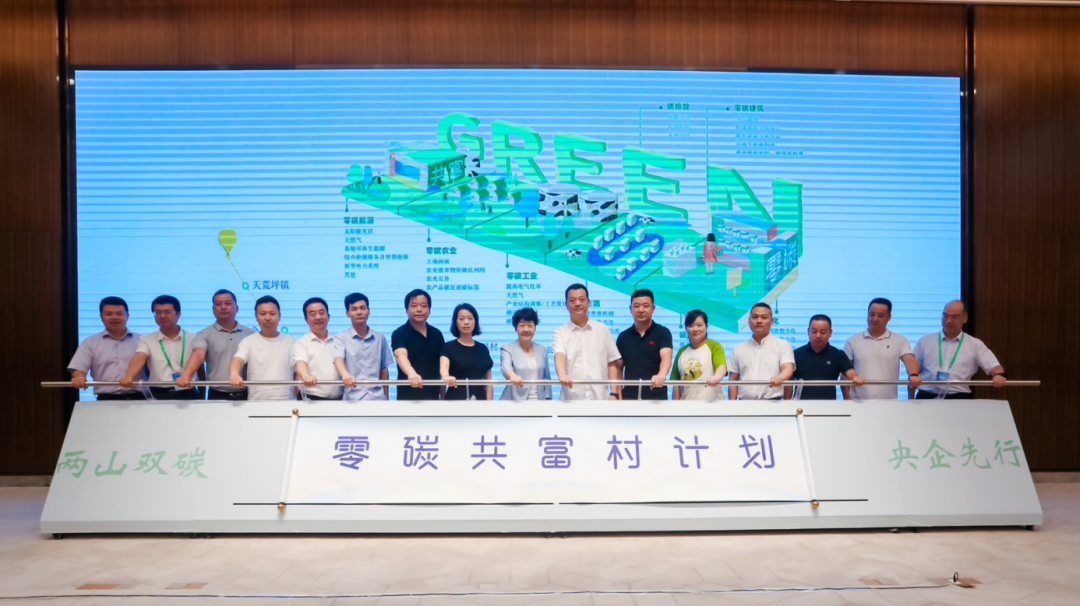 本次會議上,安吉縣天荒坪鎮政府、安吉縣生態環境局、國家電網安吉供電公司聯合安吉縣天荒坪鎮、余村村、景塢村、大竹園村、尚書干村、鄣吳村、和村村、石嶺村、長潭村、劉家塘村、高家塘村等10個村,共同啟動安吉縣“零碳共富村計劃”。