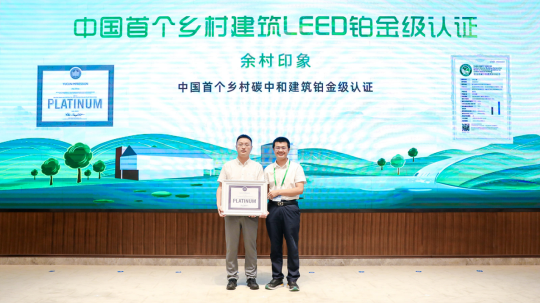 此外,會上還分享了來自施工建造、電力、交通、零碳鄉村等多場雙碳主題報告,并向余村印象頒發中國首個鄉村建筑國際LEED鉑金級認證。