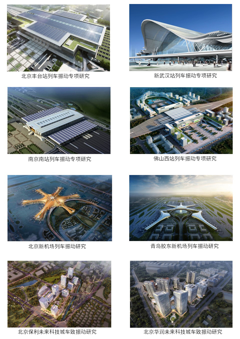 研究地鐵和高鐵通過時引起的建筑結構振動響應及噪聲水平,評價結構的安全性和人員的舒適性,提出隔振和減振的咨詢建議。