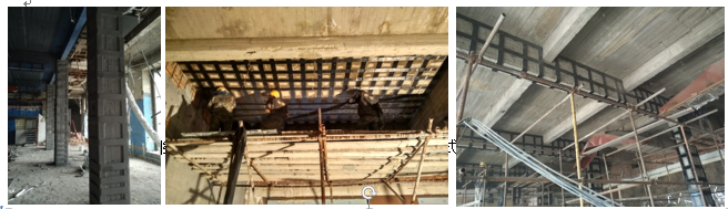 加固方法涵蓋柱加大截面、鋼筋-聚合物砂漿外加面層加固、梁板碳纖維加固等多種加固形式;國內首次大面積使用鋼絞線加固。